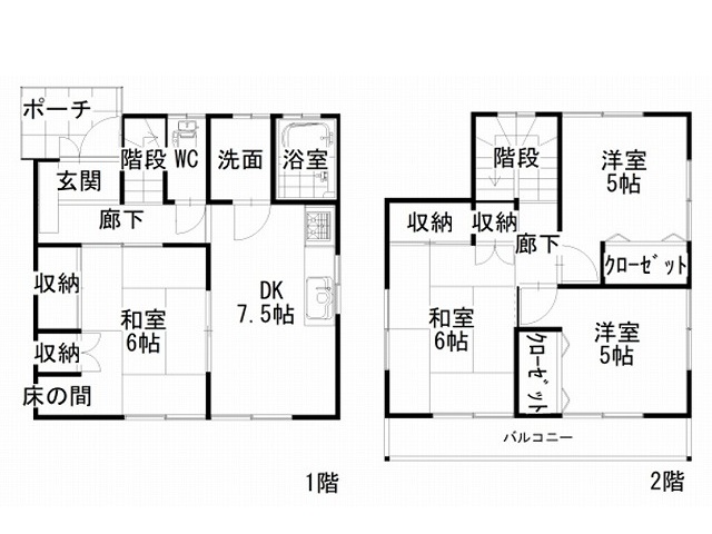 間取内容 DK7.5帖 1階   和室6帖 1階   洋室5帖 2階 2室  和室6帖 2階