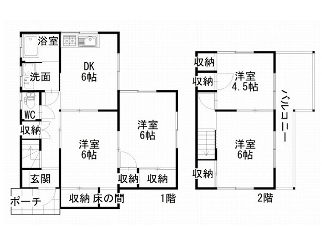 DK6帖 洋室6帖 洋室4.5帖 2階 洋室6帖 2階 |
